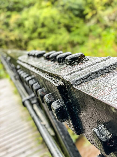 Geht den Weg über die Brücke zurück und haltet euch danach links, die Treppenstufen herunter.
